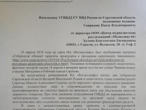 «19 апреля 2019 года на сайте ИА «Взгляд-инфо» был опубликован материал «Губернатор обещает привлечь прокуроров к проверкам саратовских чиновников». Указанная публикация содержит видеозапись (ее также обнародовали и другие СМИ - прим. ред.), фрагмент которой сделан 18 апреля в вечернее время на участке улицы Чапаева между улицами Мичурина и Рабочей города Саратова.