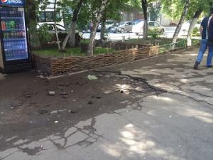 По его словам, районные чиновники много лет не могут отремонтировать небольшой участок данной пешеходной зоны и благоустроить его, поэтому на тротуаре практически полностью исчез асфальт и образовались огромные колдобины.